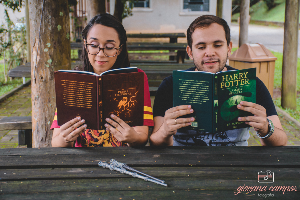 Alice é uma super amiga minha e o Romário passou a ser meu amigo também. É um casal muito divertido e já vivemos muitas aventuras juntos. Hoje foi a vez de registrar o ensaio pré wedding deles e claro, tinha que ter a cara do casal. Eles amam Harry Potter e não podia faltar umas fotos temáticas pra lá de divertidas!